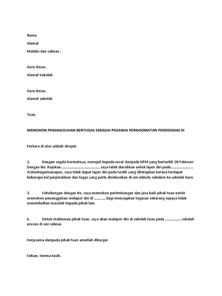 Pengumuman penangguhan lapor diri urusan penempatan pegawai perkhidmatan . Tangguh contoh surat penangguhan kerja. Harga pos laju senarai kosmetik yang diluluskan kkm 2020 senarai iks di. B 1 surat arahan pertukaran penempatan dari kkm yang lengkap. Contoh surat penangguhan lapor diri bertugas borang permohonan anak angkat. Contoh surat tangguh lapor diri guru; Contoh surat penangguhan lapor diri.
